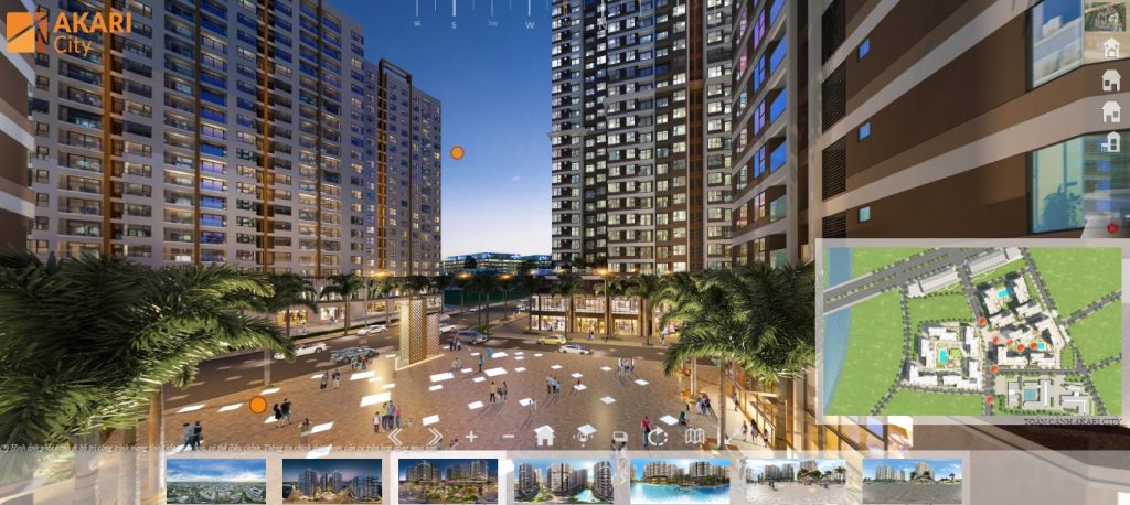 Thành phố ánh sáng đa tiện ích, gồm tổ hợp Căn hộ Akari City, Shophouse thương mại mặt tiền đại lộ 42m, Dịch vụ và tiện ích đa dạng, cùng mật độ cây xanh phủ toàn khu cao.