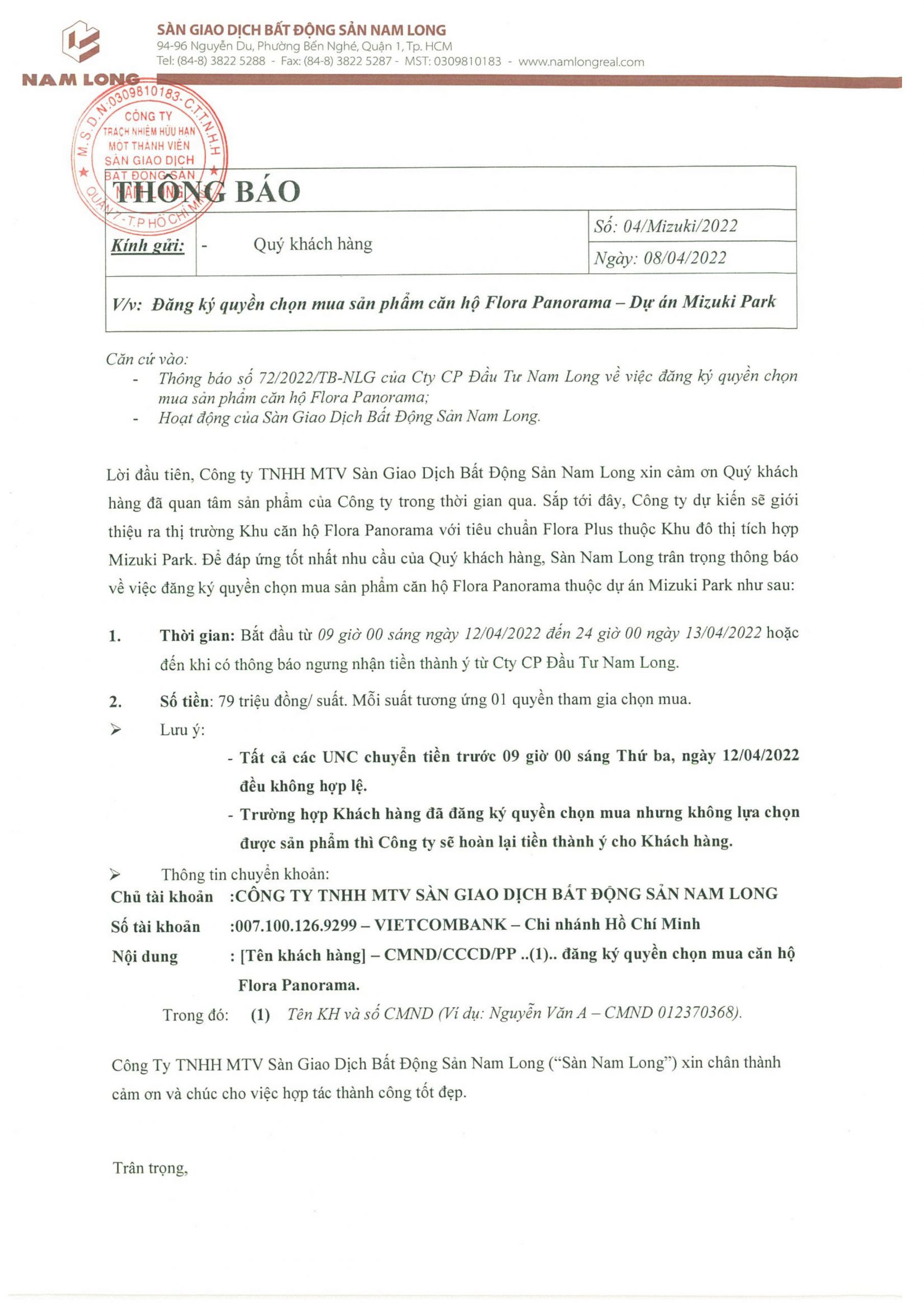CẬP NHẬT THÔNG TIN CHÍNH THỨC FLORA PANORAMA