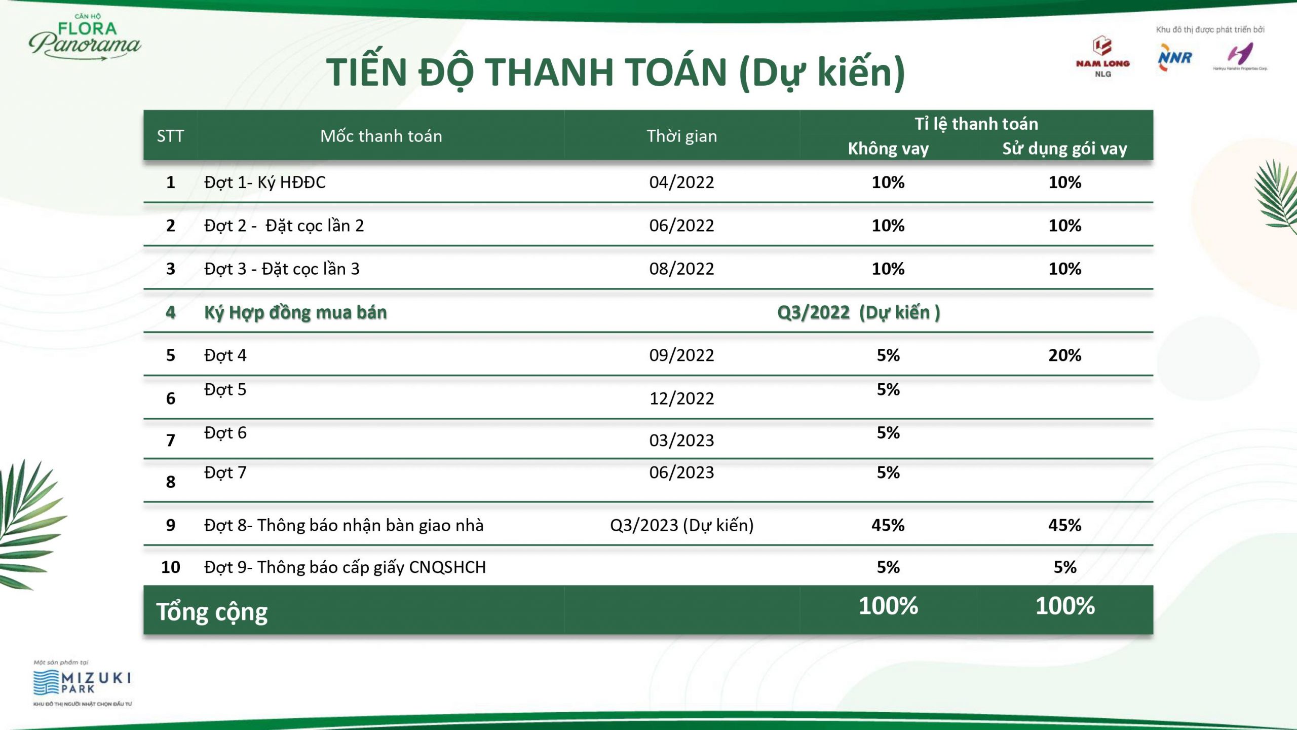 TIẾN ĐỘ THANH TOÁN CĂN HỘ FLORA PANORAMA