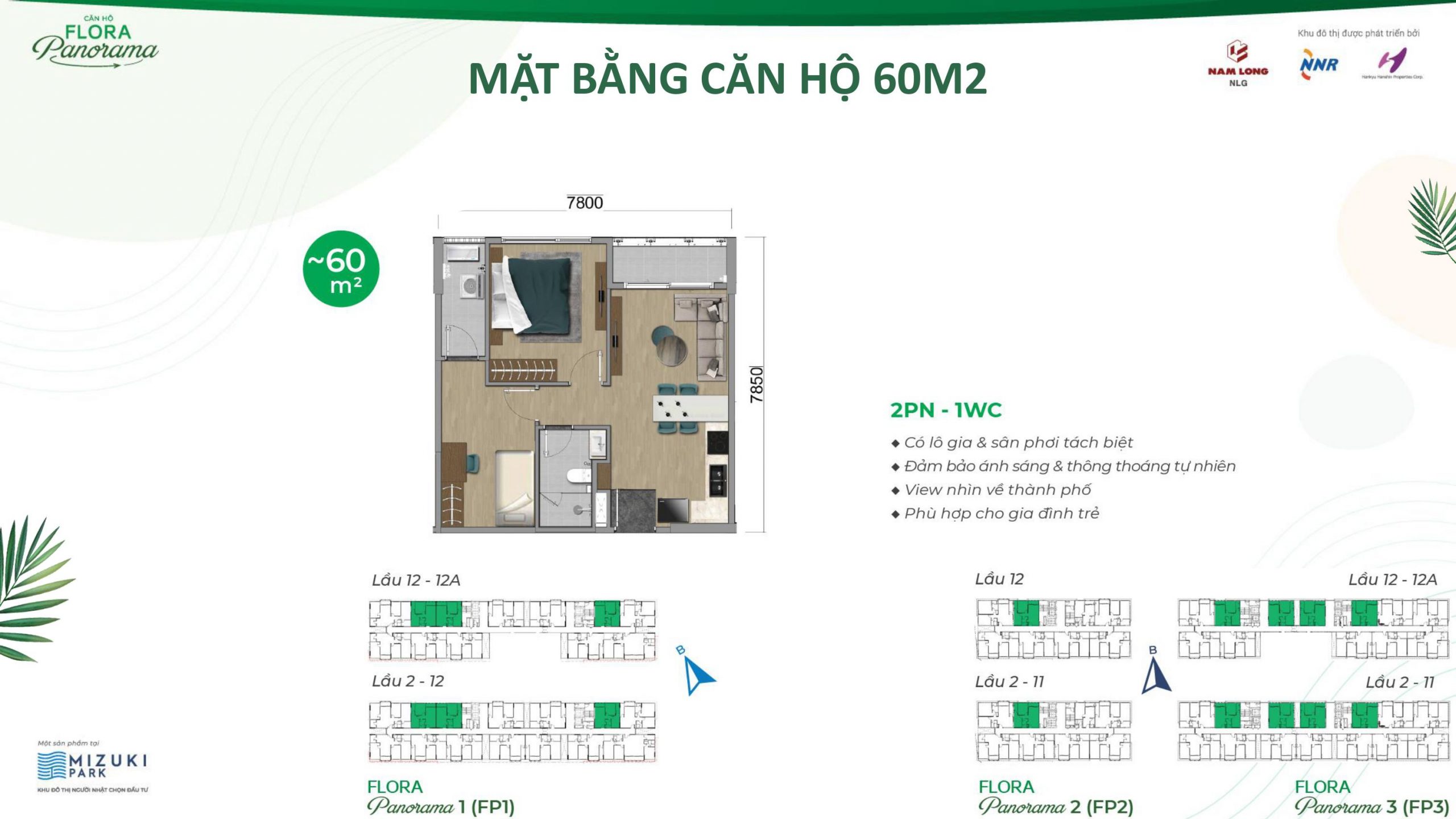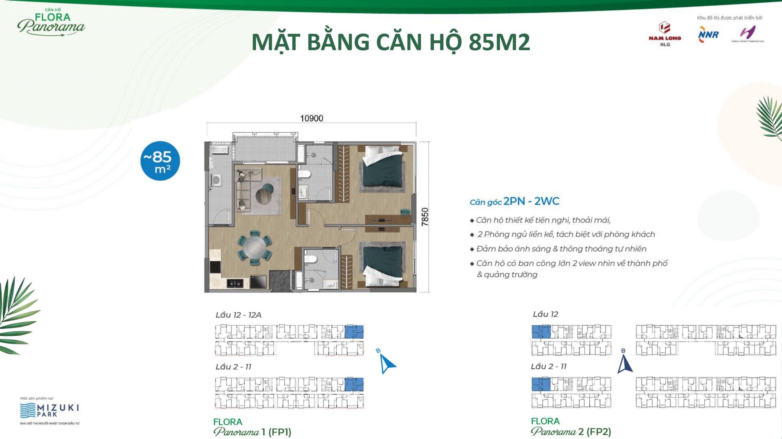 Căn hộ 86m2 căn hộ Flora Panorama Mizuki