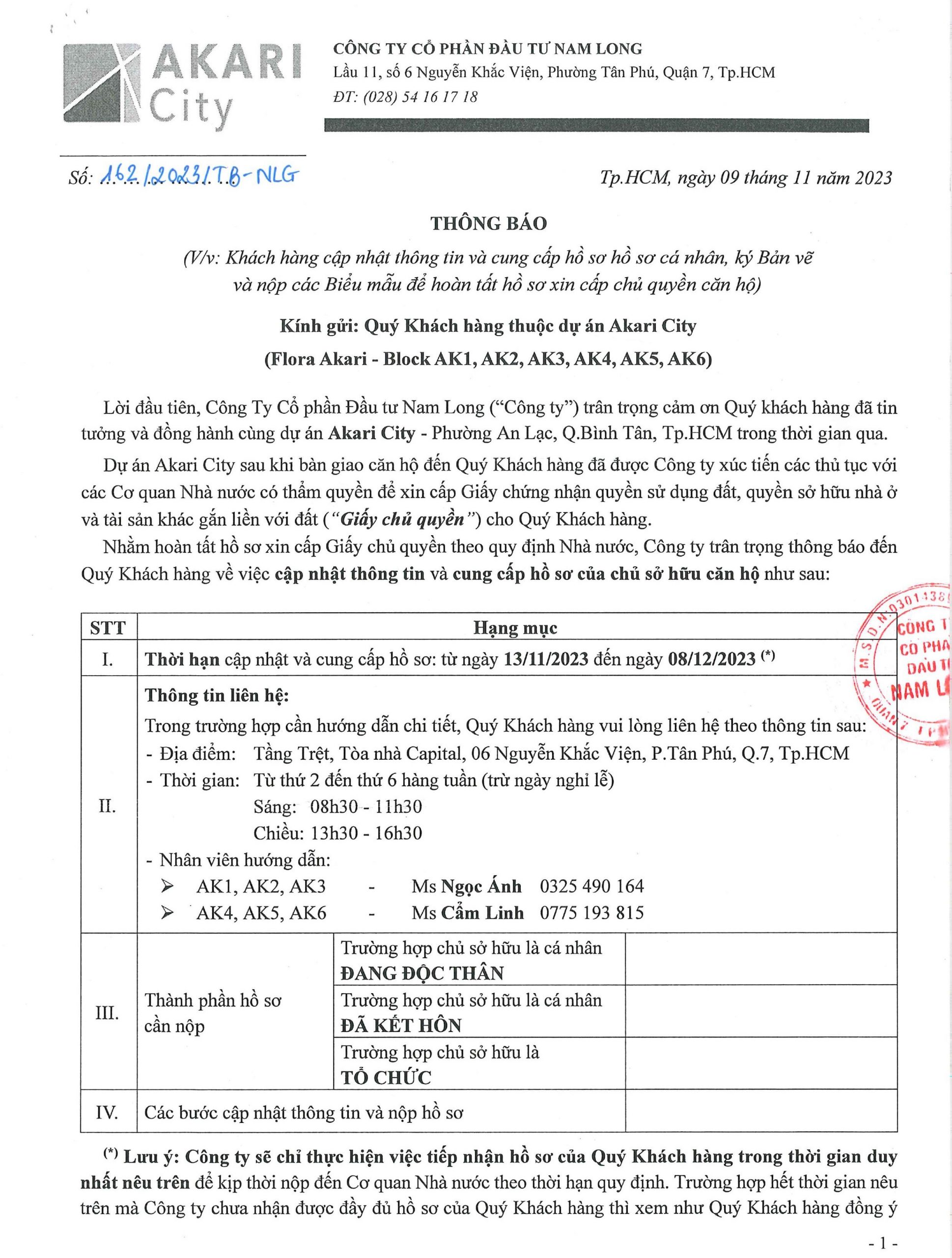 NAM LONG HƯỚNG DẪN THỦ TỤC LÀM SỔ HỒNG AKARI CITY